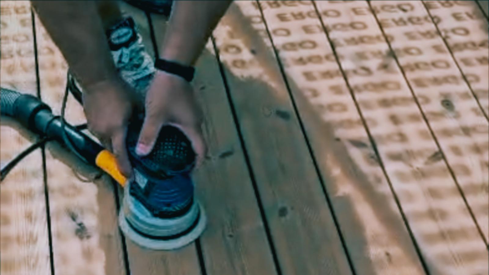 Szlifowanie nowych desek tarasowych.